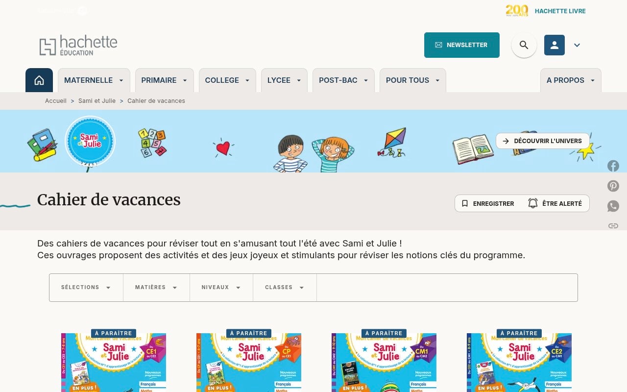 Les cahiers de vacances Sami et Julie, également édités par Hachette Éducation, capitalisent sur la popularité de leurs personnages pour rendre la révision plus attrayante. Ces cahiers sont conçus pour les élèves du primaire, y compris ceux du CP, et promettent des activités et des jeux joyeux autour des notions clés. L’univers familier de Sami et Julie est un atout majeur pour capter l’attention des jeunes lecteurs.