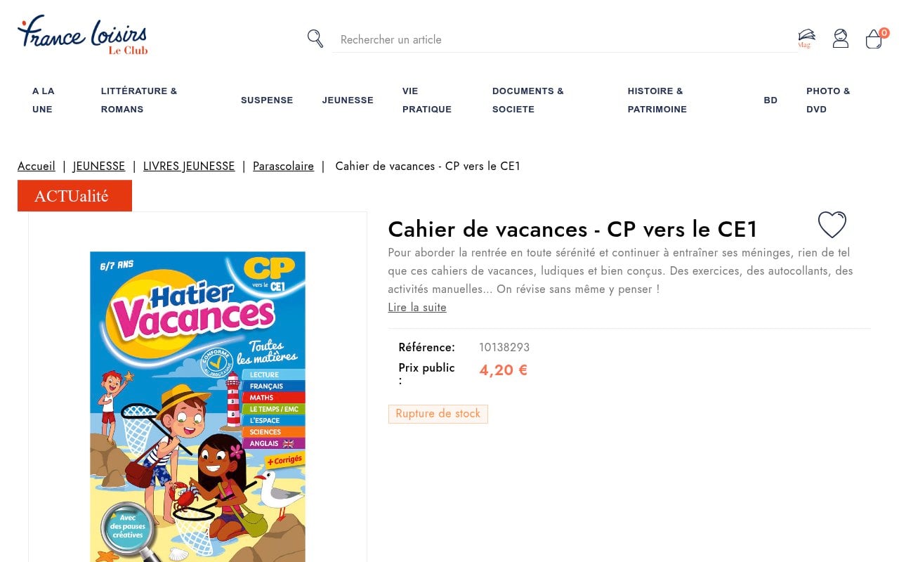 France Loisirs propose un cahier de vacances qui vise à accompagner les élèves de CP vers le CE1 de manière sereine et efficace. La description met en avant un outil « ludique et bien conçu » pour entraîner les compétences clés. En tant qu’acteur majeur dans la distribution de livres, France Loisirs s’appuie sur son expertise pour offrir un support de révision complet et accessible.