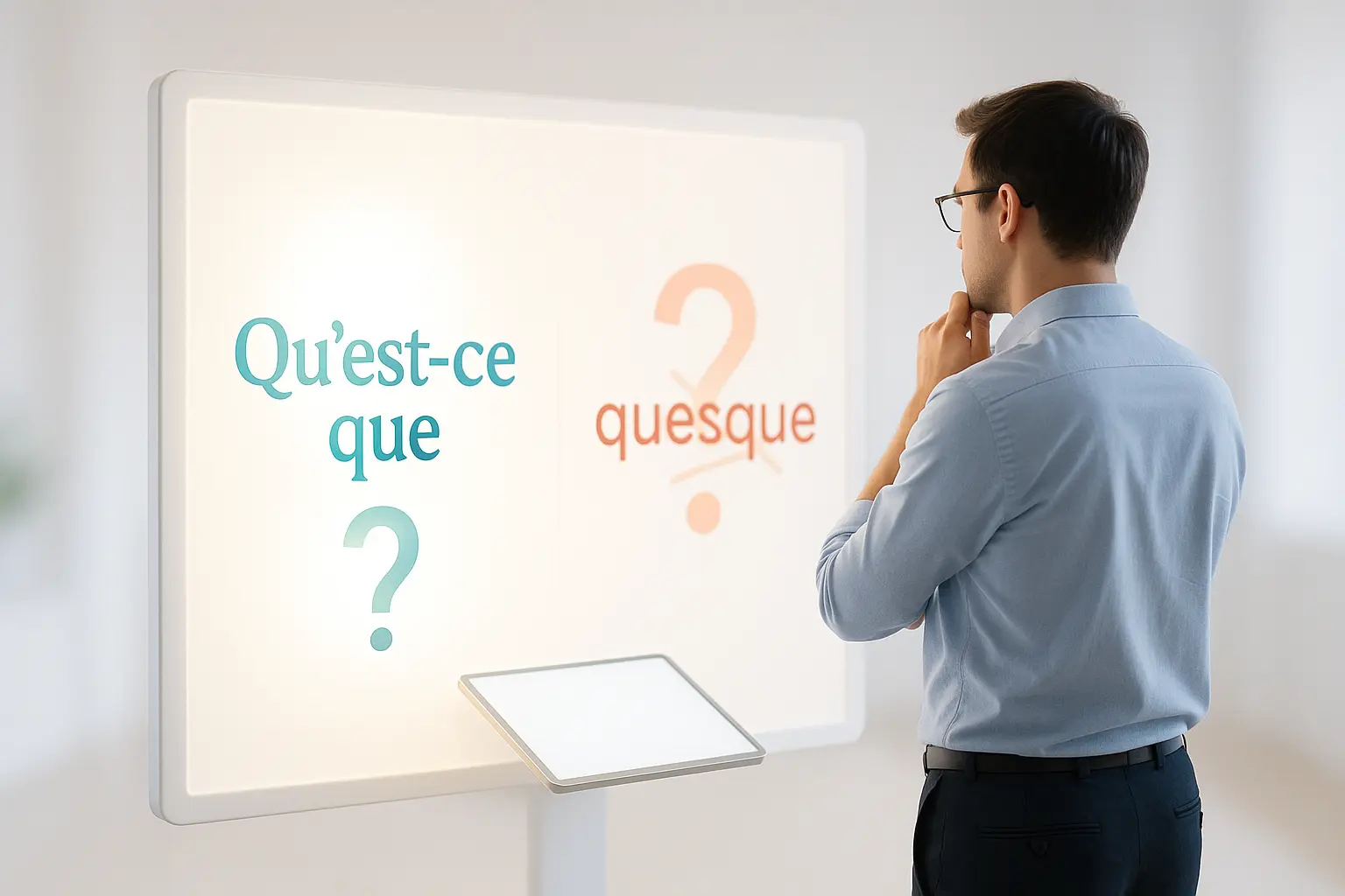 Attention : « quesque » est une forme incorrecte, issue d’une confusion entre l’oral et l’écrit. La version correcte reste « qu’est-ce que », même si des formulations simples comme « C’est quoi ? » sont privilégiées à l’oral pour leur fluidité.